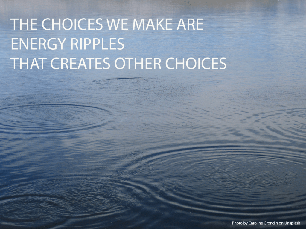 The second is choice is energy. It ripples and transfers the energy into actions taken by others due to the choice we make. Every choice is a transfer of energy since every choice we make sets in motion some form of action or inaction (which is actually an action).