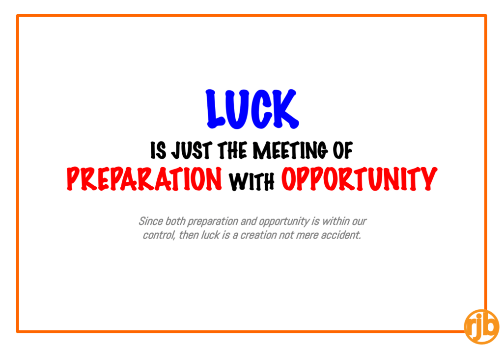 In essence, there is no such thing as luck. It is just a concept that exists to make us feel good about missing out on opportunities that we were not prepared for. It is a remedy for our procrastination and an excuse to justify our lack of preparation, planning and execution.